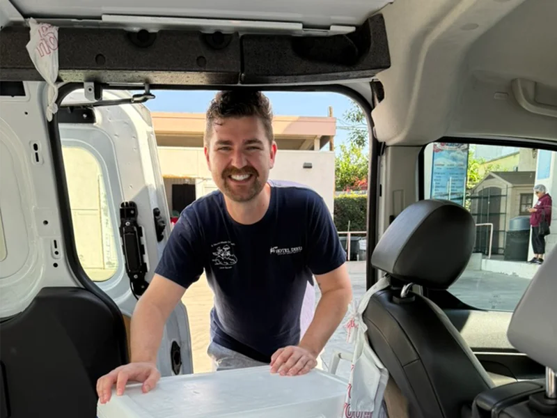 For nearly 50 years, St. Vincent Meals on Wheels has prepared and delivered food and love to hungry and homebound seniors across Los Angeles County. Volunteers like Western carry that mission forward — made possible by the generosity of donors.